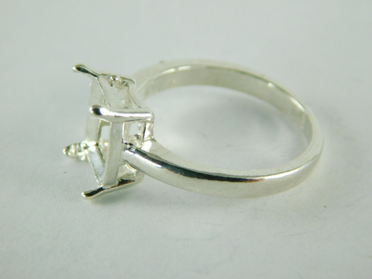- 6463 STERLING SILVER RING SETTING, 10X8 EMERALD CUT FACETED GEMSTONE, SIZE 7.75
