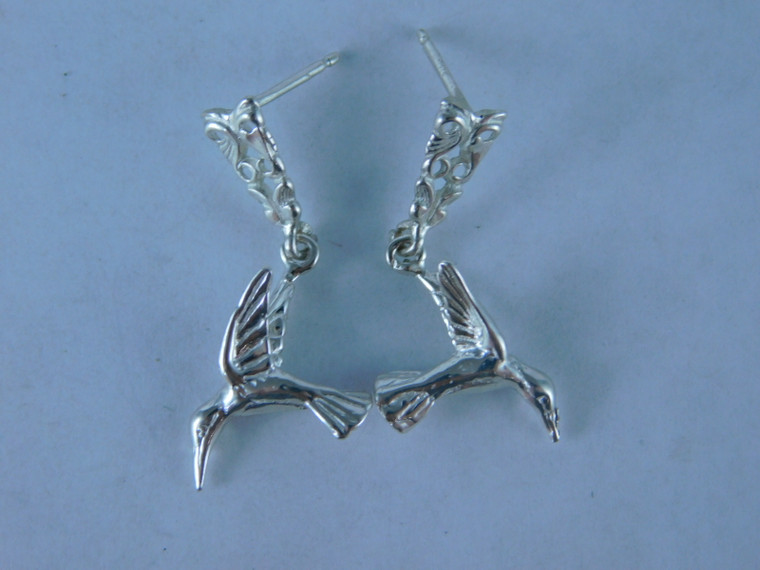 6464 Sterling Silver Humming Bird Earrings w/ Arrow Posts