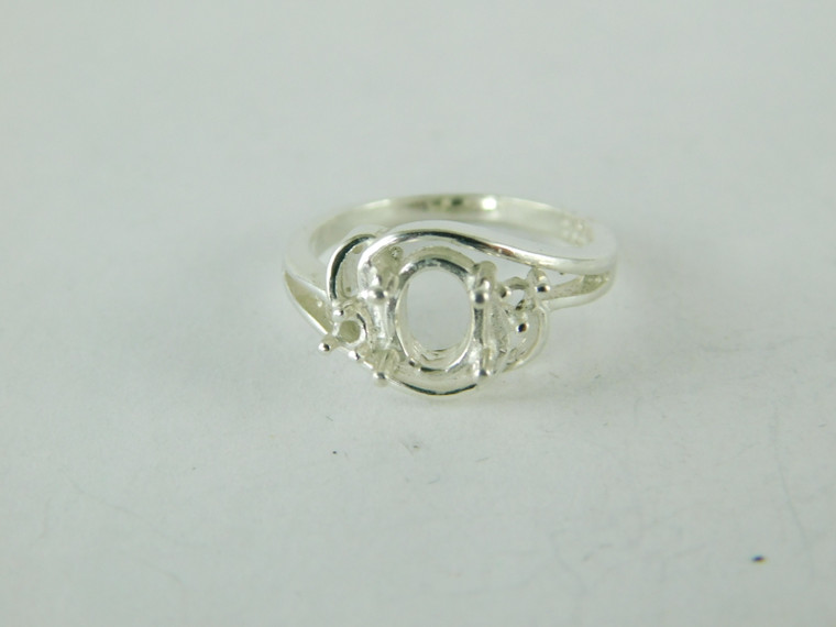 - 6481 STERLING SILVER RING SETTING, 3 STONE, 1 - 7X5 MM OVAL & 2 - 1.71 MM ROUND FACETED GEMSTONE, SIZE 5.25