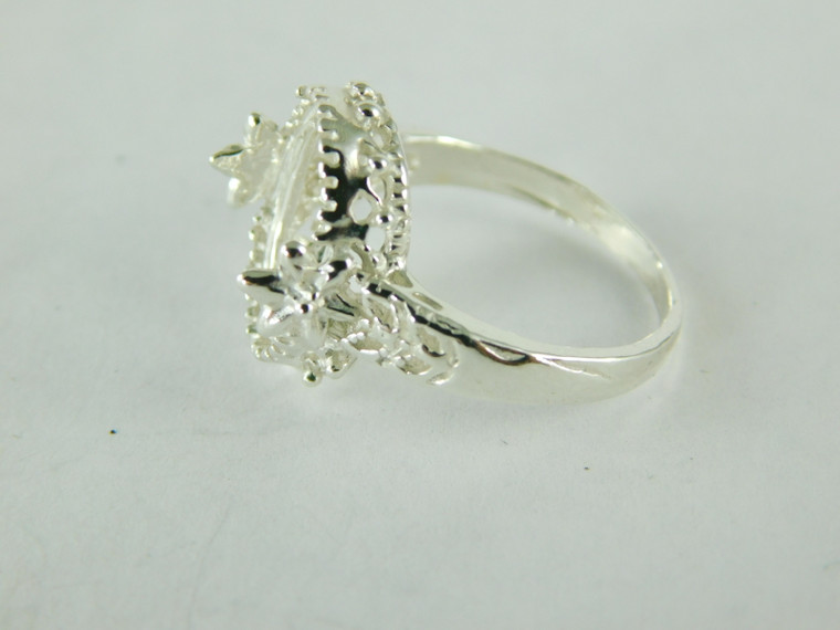 - 6484 STERLING SILVER FILIGREE RING SETTING, 14X10 MM OVAL CABOCHON ONLY GEMSTONE, SIZE 8