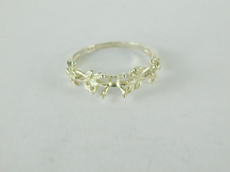 sterling silver ring setting, 1-6mm & 2-1.7 mm round faceted gemstone, size 9.25