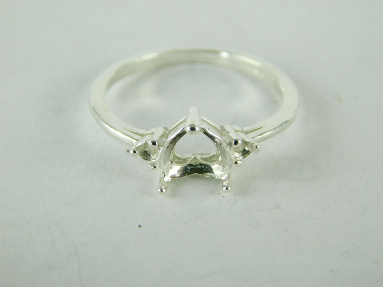 sterling silver ring setting, 3 stone, 1 - 7x7 mm heart & 2 - 2 mm round faceted gemstone, size 8.25