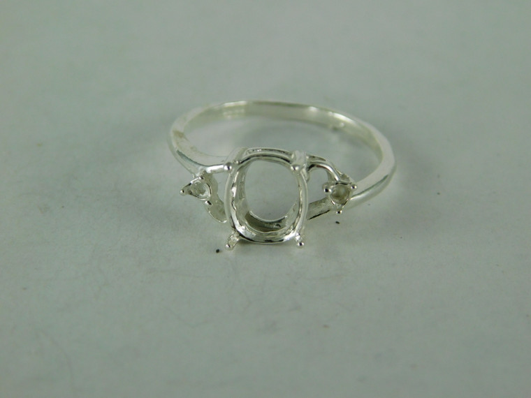 sterling silver ring setting, 9x7 mm oval & 2 - 2 mm round faceted gemstone, size 9
