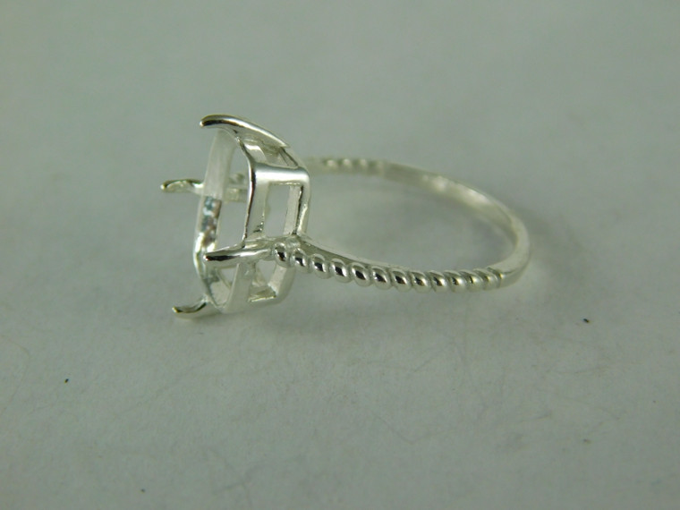 sterling silver ring setting, 12x10 mm emerald cut faceted gemstone, size 7