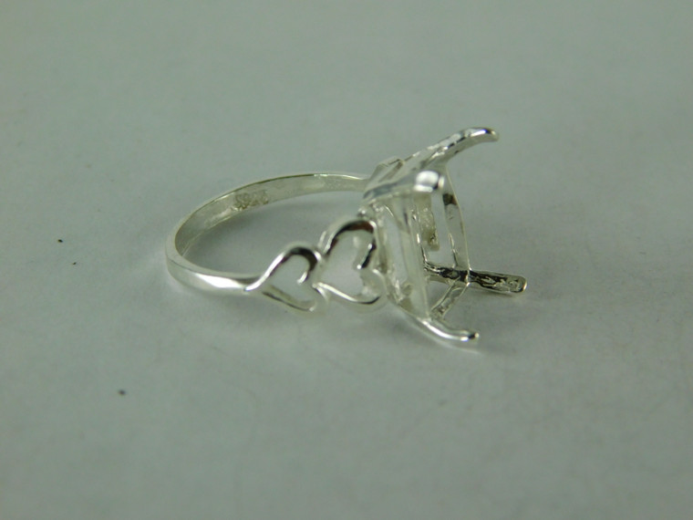 sterling silver ring setting, 12x10 mm emerald cut faceted gemstone, size 6.75