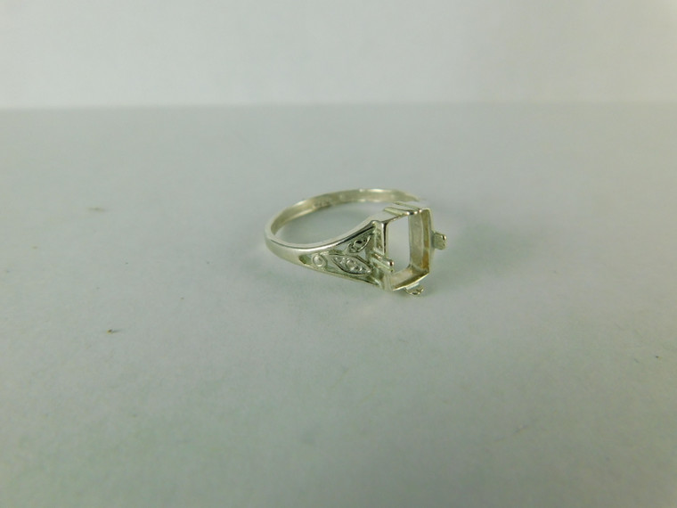 Sterling Silver Ring 7x9mm Emerald Cab. Setting, Size8.5