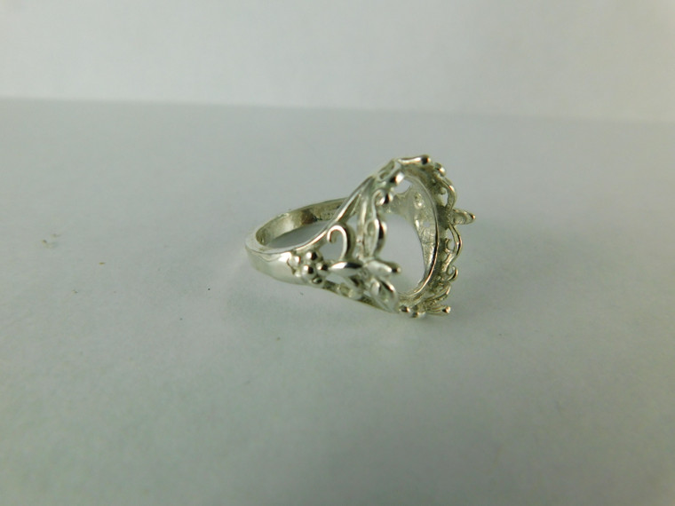 Sterling Silver Ring, 14x12 mm Oval Cab. Setting, Size 8