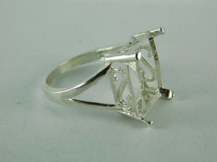 6536 Sterling Silver Ring Setting, 15x11 mm Emerald Faceted Stone, Size 8.25