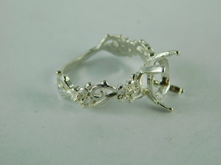 - 6541 Sterling Silver Ring Setting, 5 Stone (11x9 mm Oval Faceted and 4-1.5 mm Round), Size 8.75