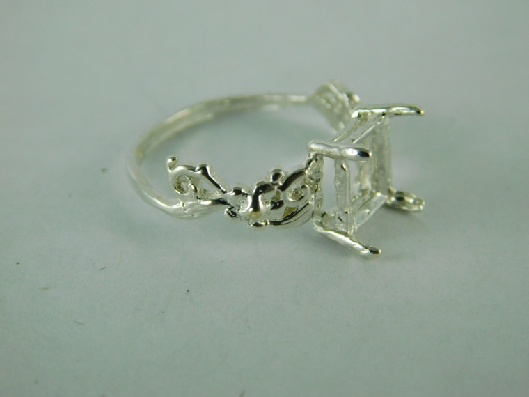 Sterling Silver Ring Setting, 8x6 mm Emerald cut Faceted Stone, Size 7.25