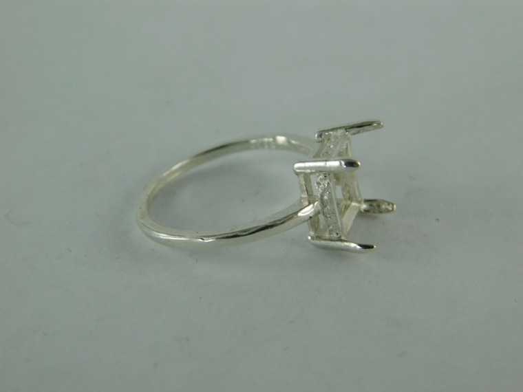 - 6558 Sterling Silver Ring Setting, 10x8 mm Emerald Faceted Stones, Size 7.5