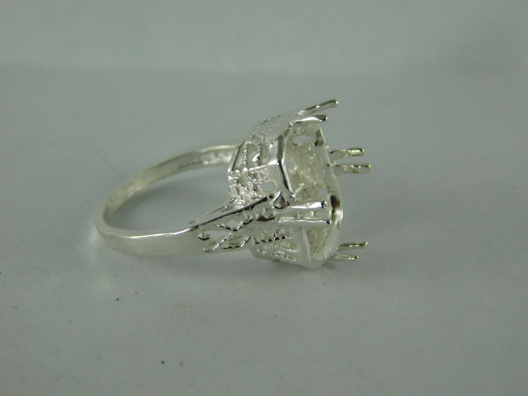 Sterling Silver Ring Setting, 14x10 Emerald Cut Faceted Stone, Size 6.5