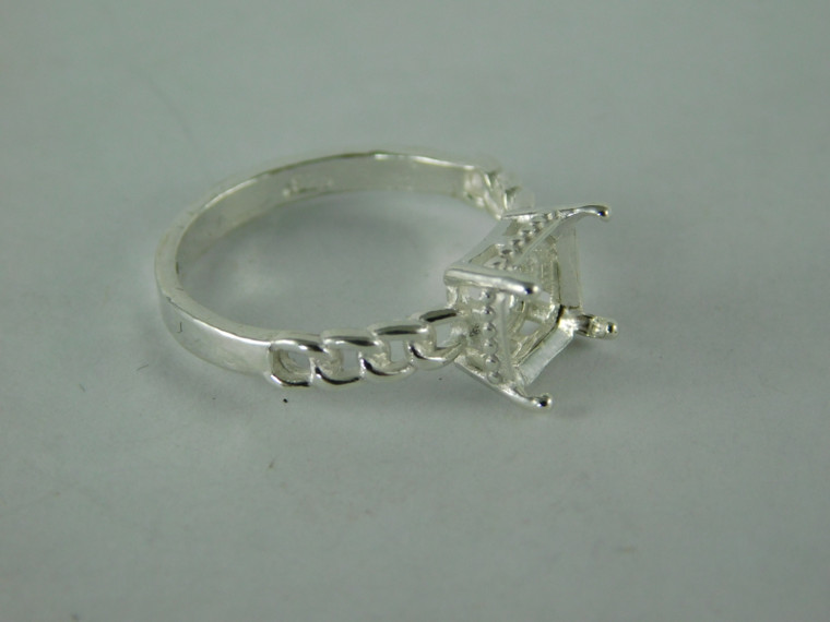 sterling silver ring setting, 7 mm princess faceted gemstone