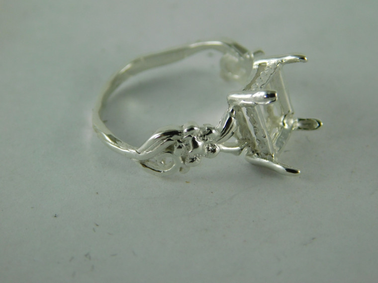 6572 STERLING SILVER RING SETTING, 9X7 MM EMERALD CUT FACETED GEMSTONEM, SIZE 7.5