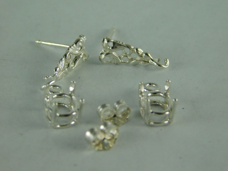 - 6598 Sterling Silver Earrings with Designer Posts, 7x5 mm Oval Setting