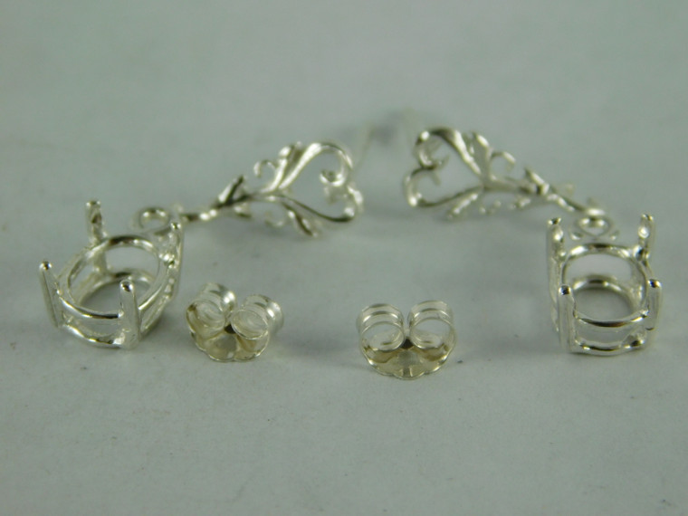 - 6602 Sterling Silver Earrings with Heart Posts, 6x4 mm Oval Setting