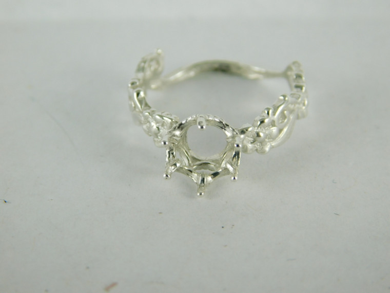 - 6621 Sterling Silver Ring Setting, 7mm Round Faceted, Size 7