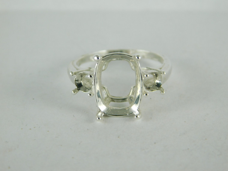 6624 Sterling Silver Ring Setting, (3 Stone) 14x10 Oval & (2) 4.5mm Round, Size 8.5