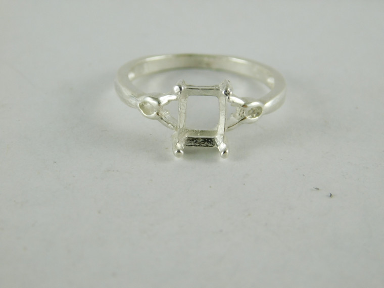 6631 Sterling Silver Ring Setting, 8x6 Emerald Faceted, Size 8.5