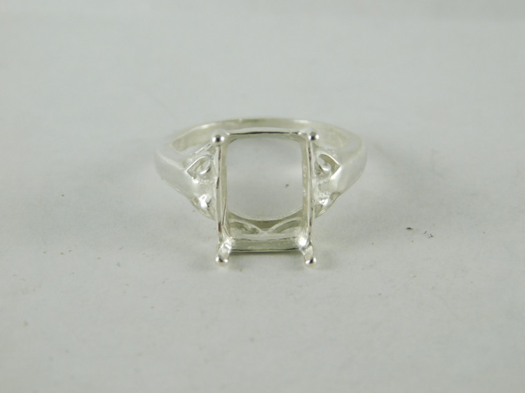 6632 Sterling Silver Ring Setting, 12x10 Emerald Faceted, Size 7.5