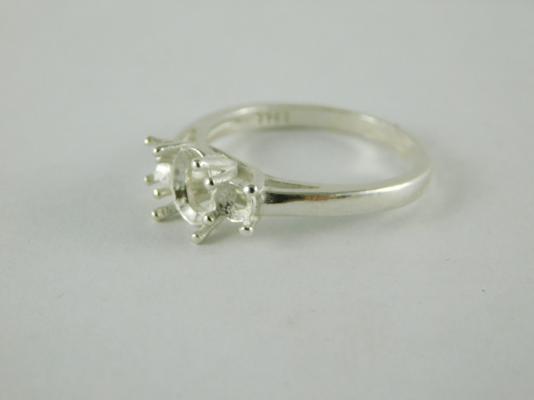- 6637 Sterling Silver Ring Setting, (3 Stone) 7x5 Oval & (2) 3.5mm Rds, Size 8