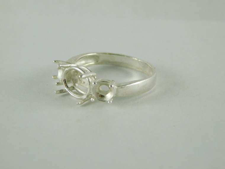 - 6639 Sterling Silver Ring Setting, (3 Stone) 9x7 Oval & (2) 5mm Rds, Size 8
