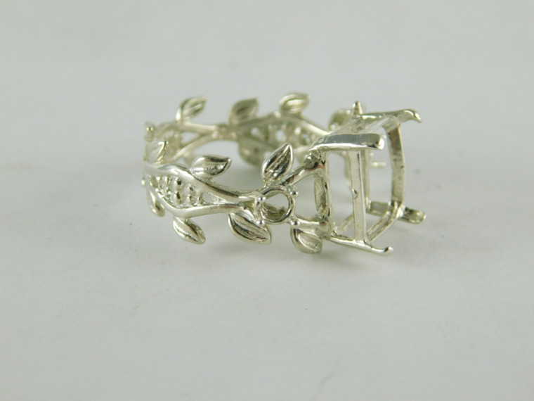6650 Sterling Silver Ring Setting, (3 Stone) 11x9 Emerald & (2) 3.5mm Rd, Size 9.75