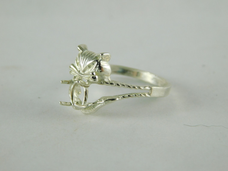 - 6652 Sterling Silver Fox Ring Setting, 6x4 Oval Cab or Faceted, Size 6.75