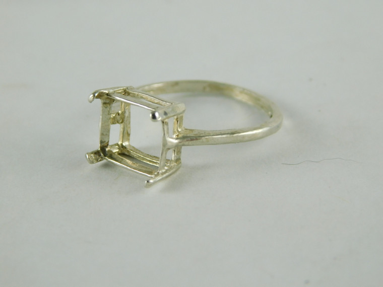 - 6654 Sterling Silver Ring Setting, 10x8 Emerald Cut Faceted, Size 10.25
