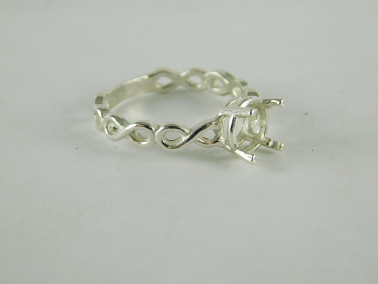 - 6656 Sterling Silver Ring Setting, 7.5mm Round Faceted, Size 8
