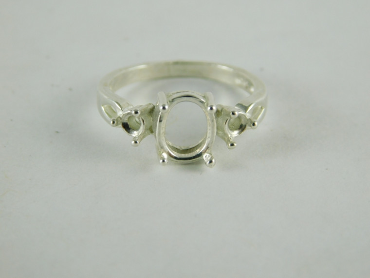 - 6662 Sterling Silver Ring Setting, (3 Stone) 8x6 Oval Faceted & (2) 3x5 Rd Accents, Size 7