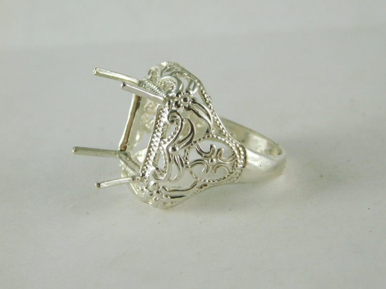 6665 Sterling Silver Ring Setting, 12x10 Emerald or Rectangle, w/ Extended Prongs, Size 6.75