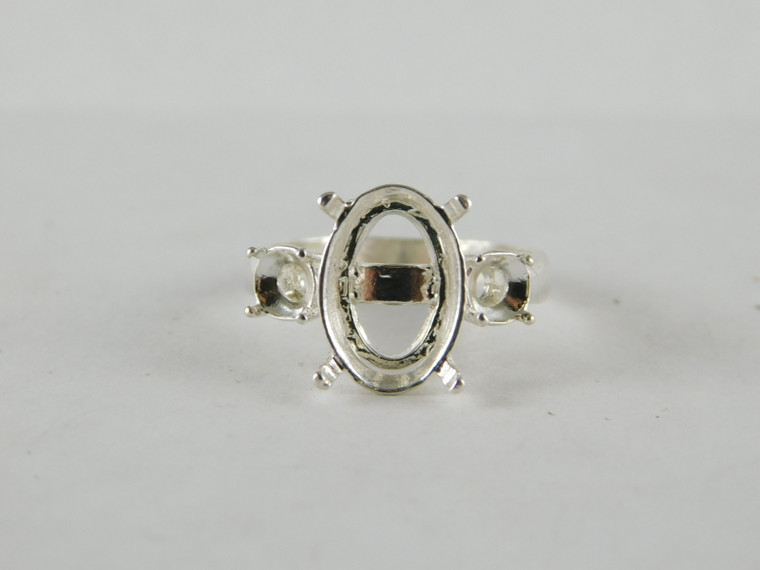 6671 Sterling Silver Ring Setting, Multi-Stone, 14x10 Oval & (2) 4.5 mm Rd Accents, Size 8