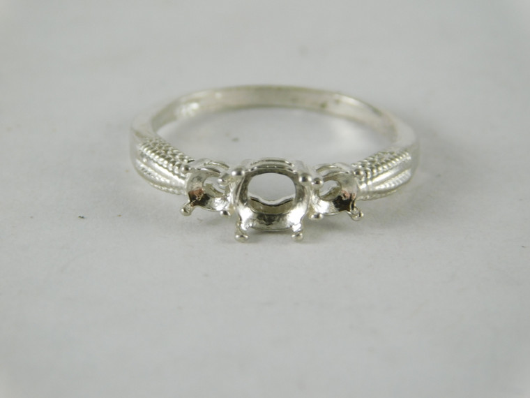 - 6678 Sterling Silver Ring Setting, Multi-Stone, 6mm Rd & (2) 3.5mm Rd Accents, Size 8.75