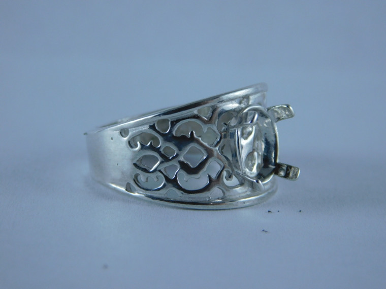 6691 Sterling Silver Ring Setting, 9x7 Oval Cabochon, Size 7.5