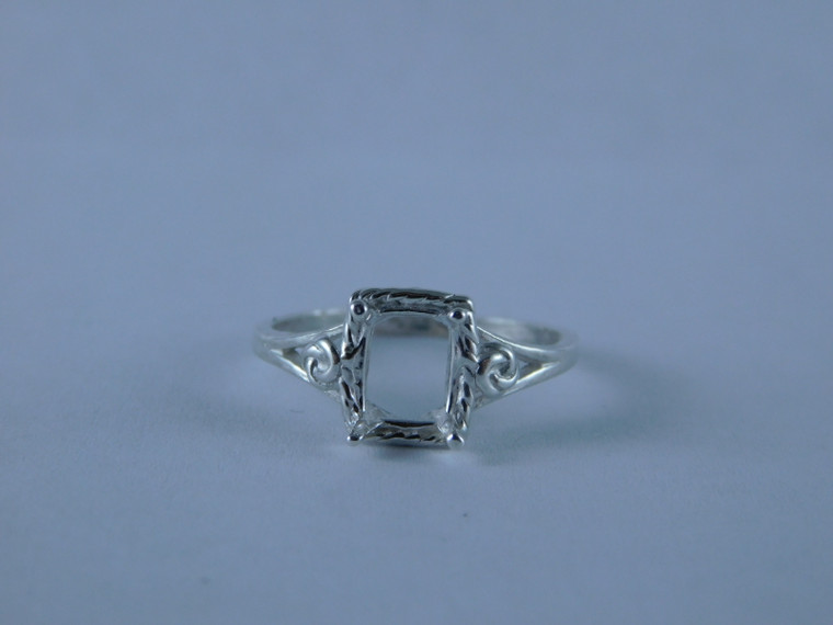 6696 Sterling Silver Ring Setting, 7.5x5.5 Emerald Faceted, Size 8