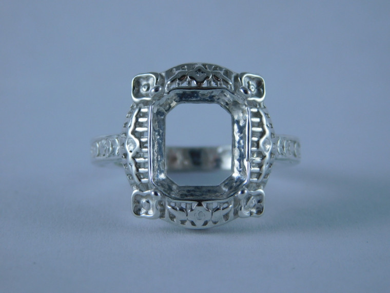 - 6698 Sterling Silver Ring Setting, 11x9 Emerald Faceted, Size 8