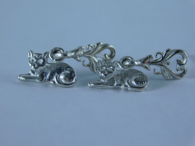 6709 Sterling Silver Cat Earrings with Heart Posts