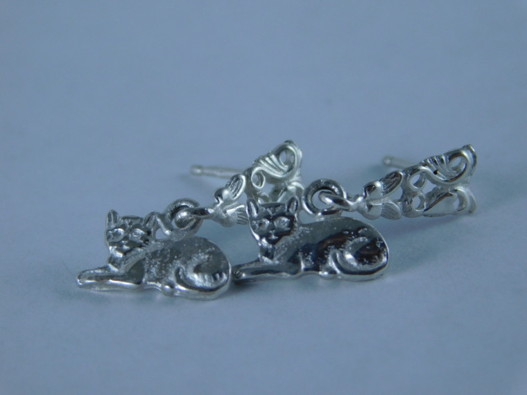 - 6710 Sterling Silver Cat Earrings with Arrow Posts