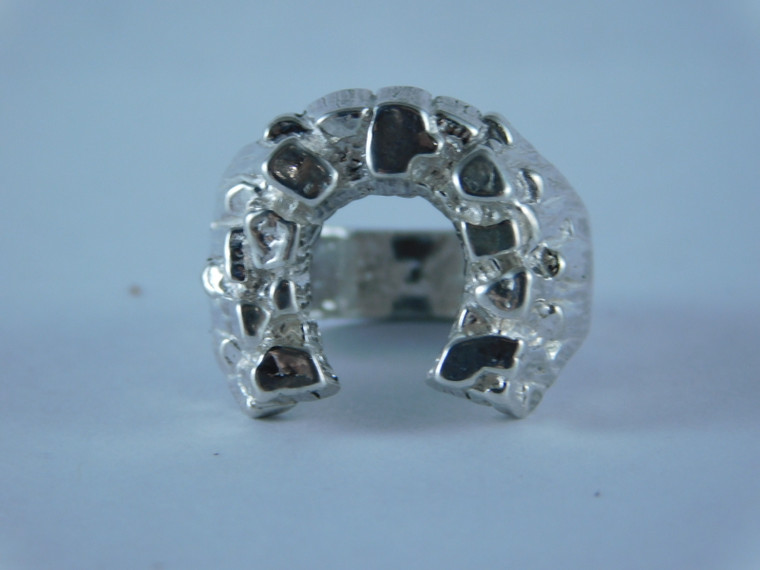 - 6720 Sterling Silver Nugget Horseshoe Ring, Size 7.75