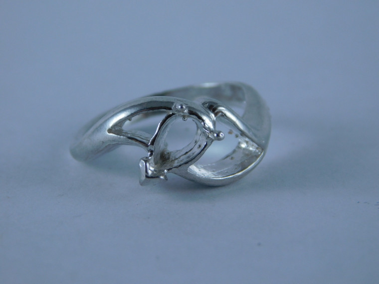 - 6739 Sterling Silver Ring Setting, 8x5 Pear Faceted, Size 6.25