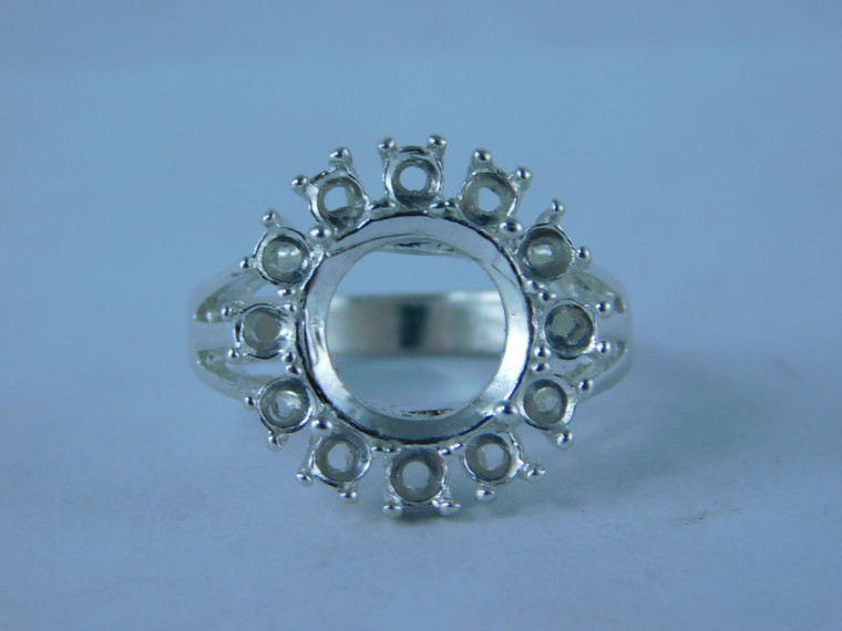 - 6783 Sterling Silver Ring Setting, 11.5mm Round & (12) 2.5mm Round Accents, Size 6.25