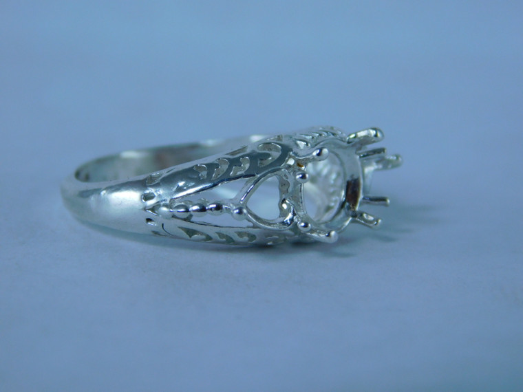 6797 Sterling Silver Ring Setting, 7.5mm Round & (2)5mm Heart Accents, Size 8
