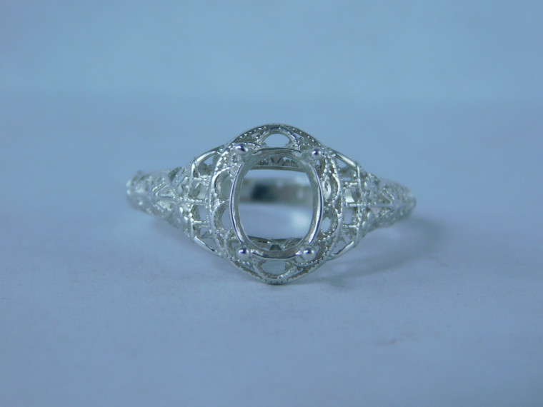 6822 Sterling Silver Ring Setting, 9x7 Oval Faceted, Size 8.25