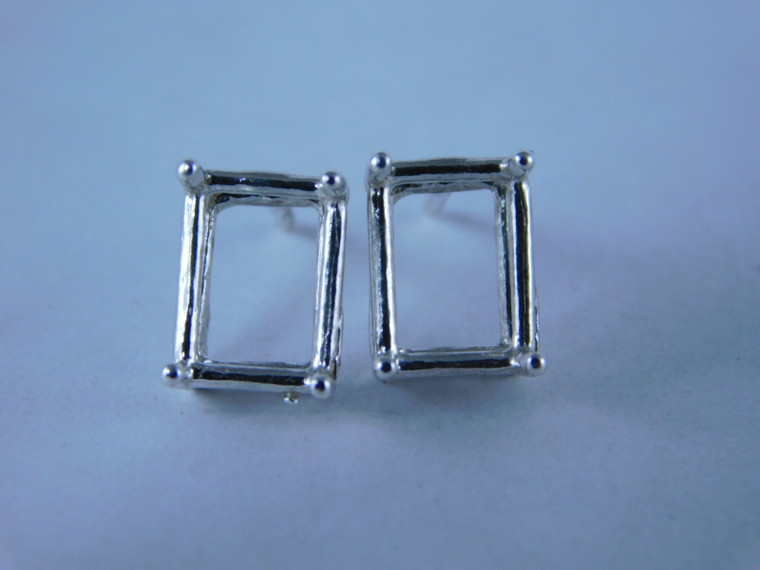 - ER29a Sterling Silver Stud Earring Setting, 8x6 Emerald Cut