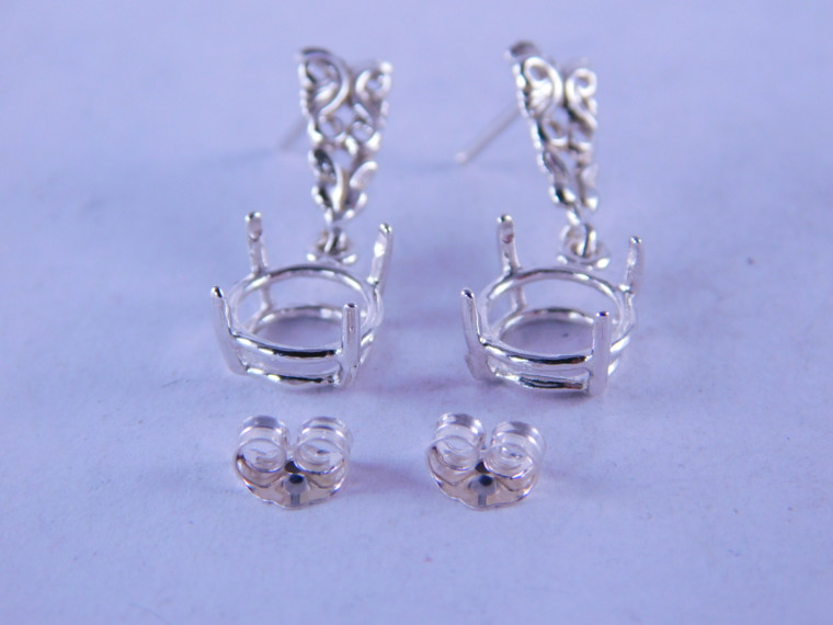 - ER44 STERLING SILVER EARRING SETTING, 9 MM FACETED OR 8 MM CABOCHON ROUND GEMSTONE