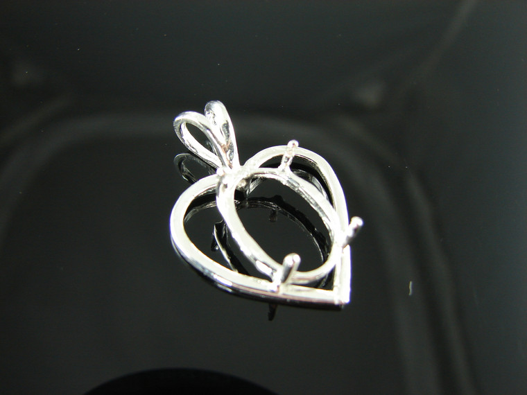 - P22c Pendant Heart Setting Sterling Silver , 16x12 mm Oval Facet or Cabochon Gemstone