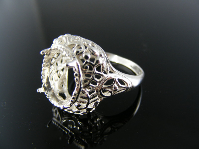 R114 STERLING SILVER RING SETTING, 12X10 MM OVAL FACETED GEMSTONE, SIZE 7.5