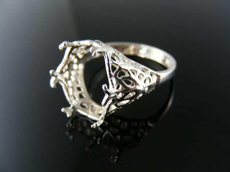R12 STERLING SILVER FILIGREE RING SETTING, 14X10 MM OVAL FACETED GEMSTONE, SIZE 7.5