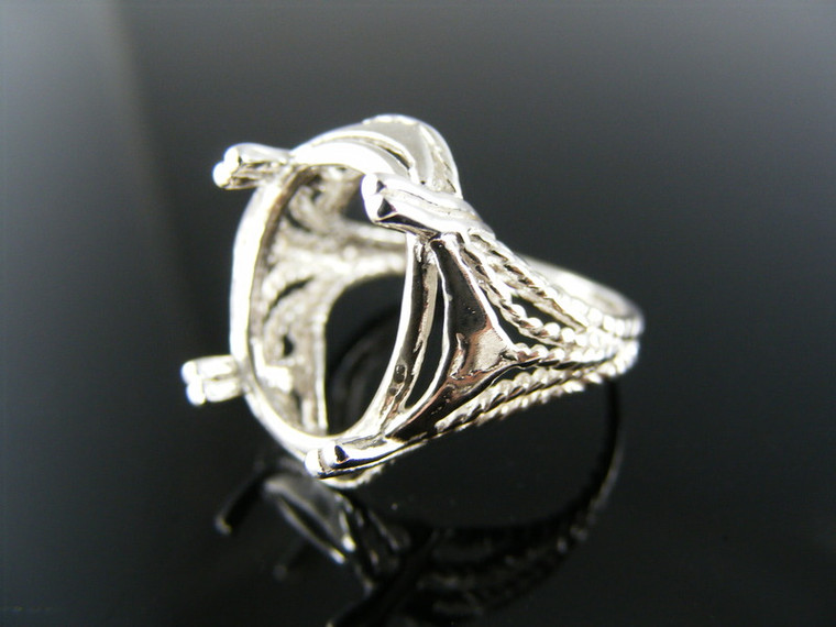 - R124 STERLING SILVER RING SETTING, 16X12 MM FACETED OR CABOCHON GEMSTONE, SIZE 5.5